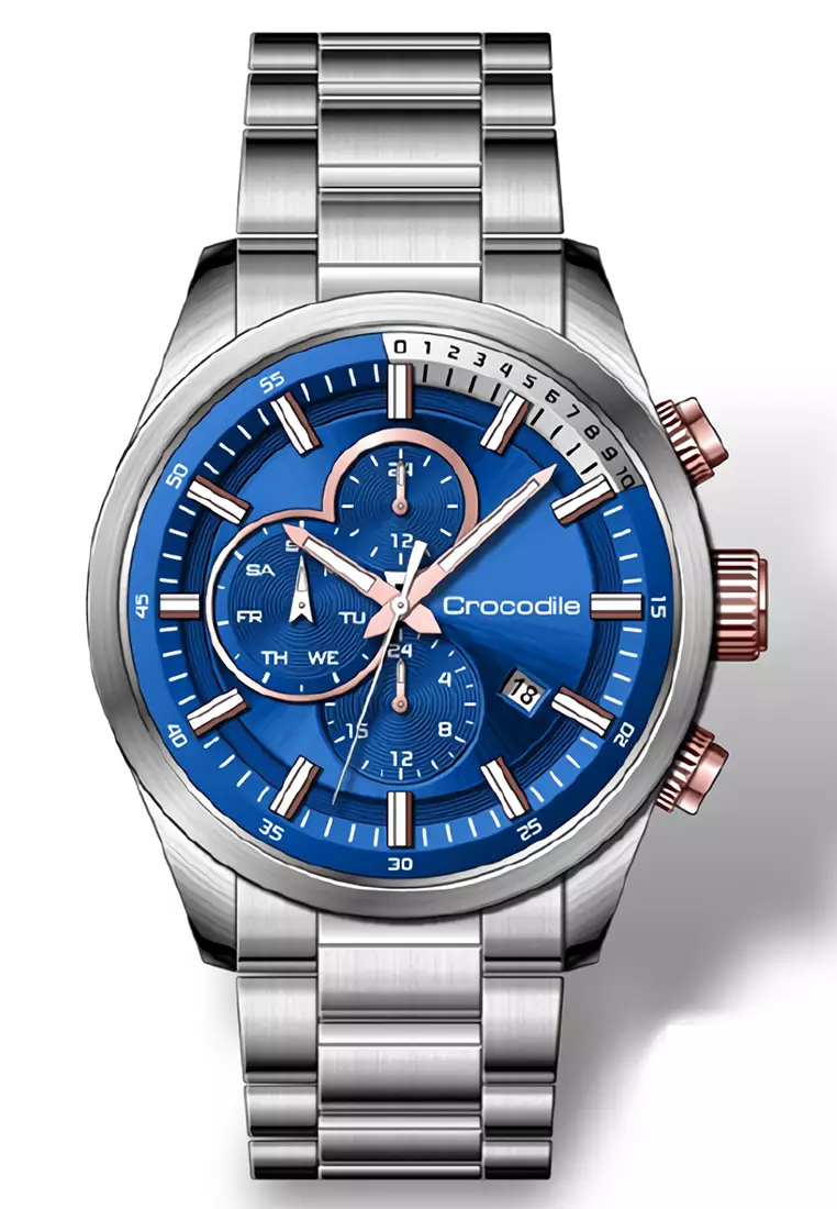 Crocodile - Jam Tangan Pria - Silver Blue - Stainless Steel Bracelet - CM-008A11C