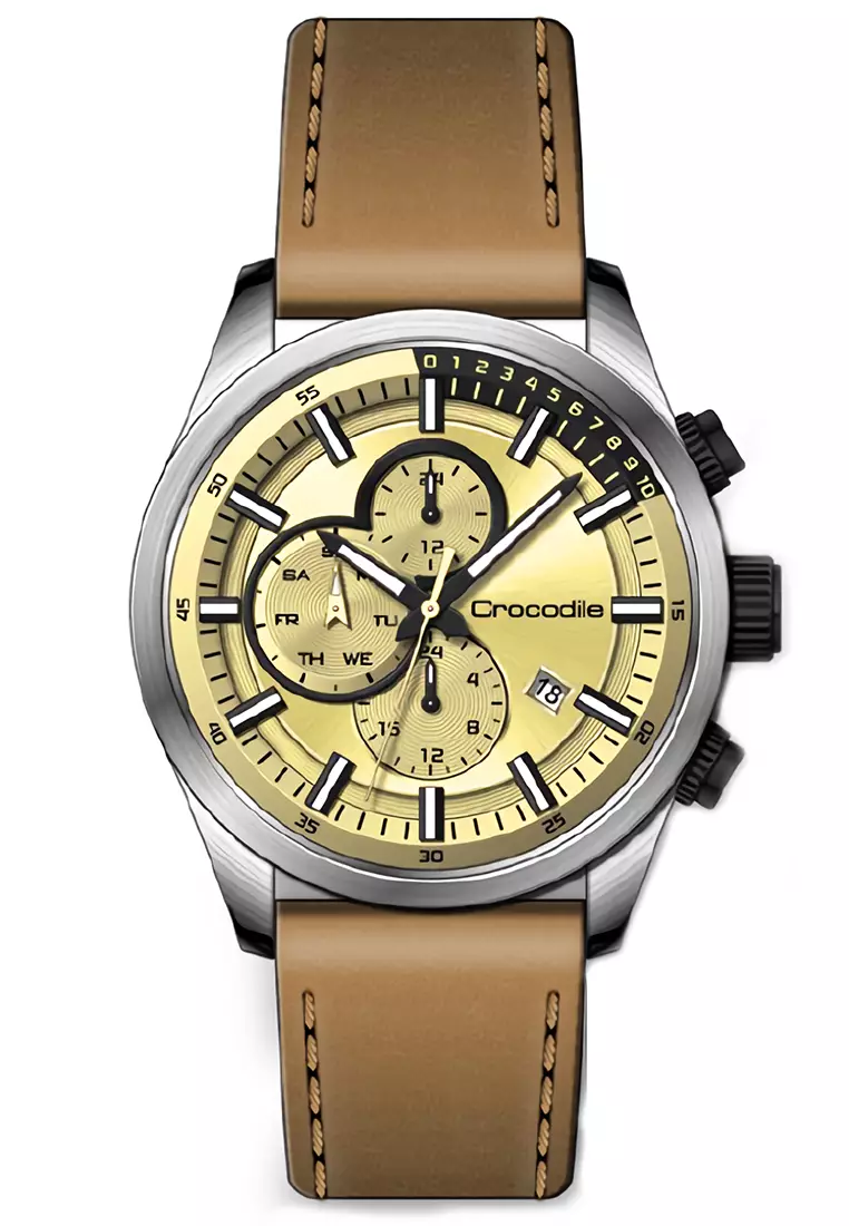 Crocodile - Jam Tangan Pria - Silver - Brown Leather Strap - CM-008A24H