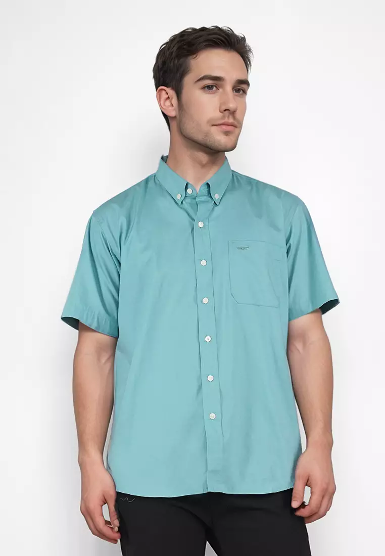 Crocodile MALE 0129 Green 26 - Men Shirt Kemeja Lengan Pendek - Relax Fit - Katun