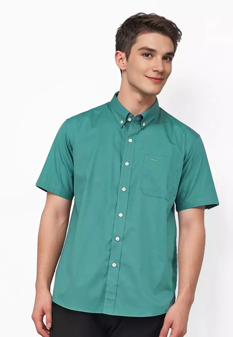 Crocodile MALE 0129 Green 31 - Men Shirt Kemeja Lengan Pendek - Relax Fit - Katun