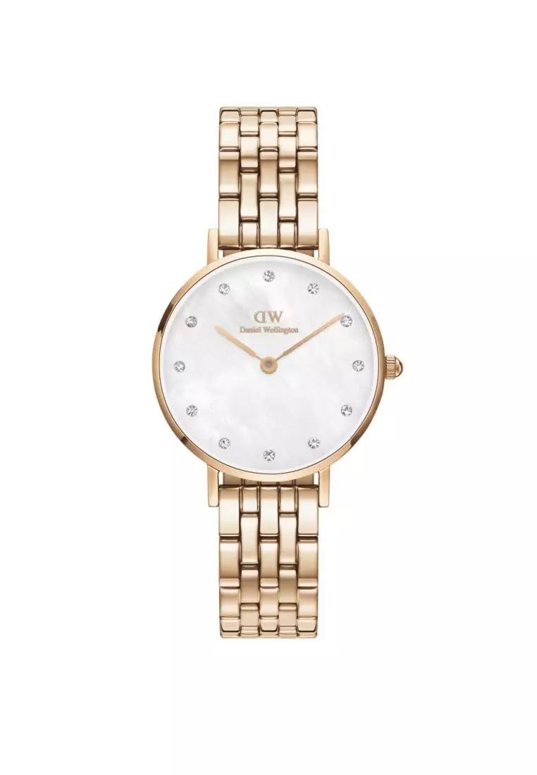 Petite Lumine 28mm 5-Link Rose Gold MOP White Dial - Watch for women - Stainless Steel watch strap - - DW official - Women's watch - Female watch - Ladies watch - Authentic - Jam tangan wanita - jam tangan perempuan