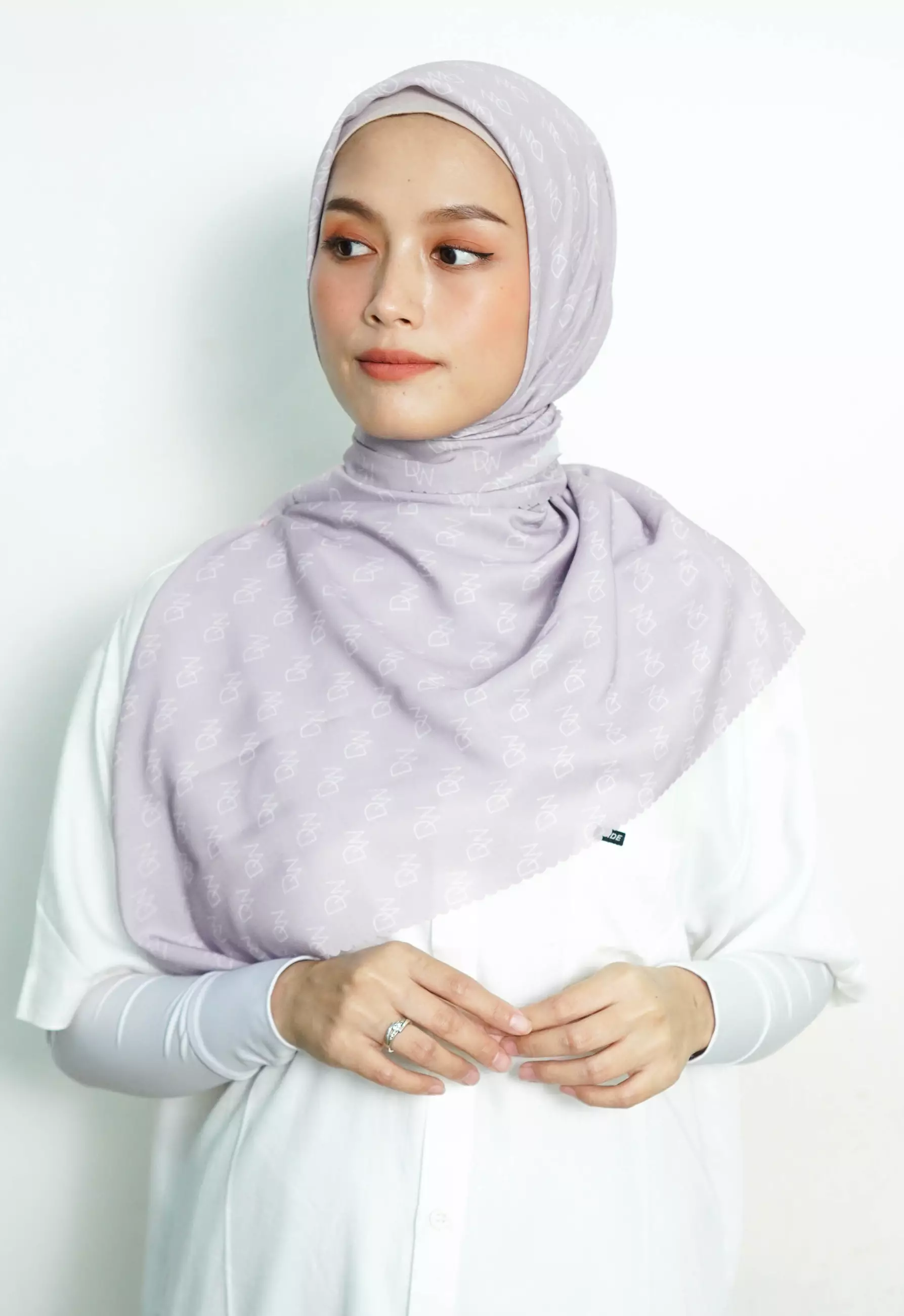 WK055 Kerudung Segi Empat Anti Mleyot Anti Kusut Motif Premium Monogram DAW Project Lilac Ungu Muda