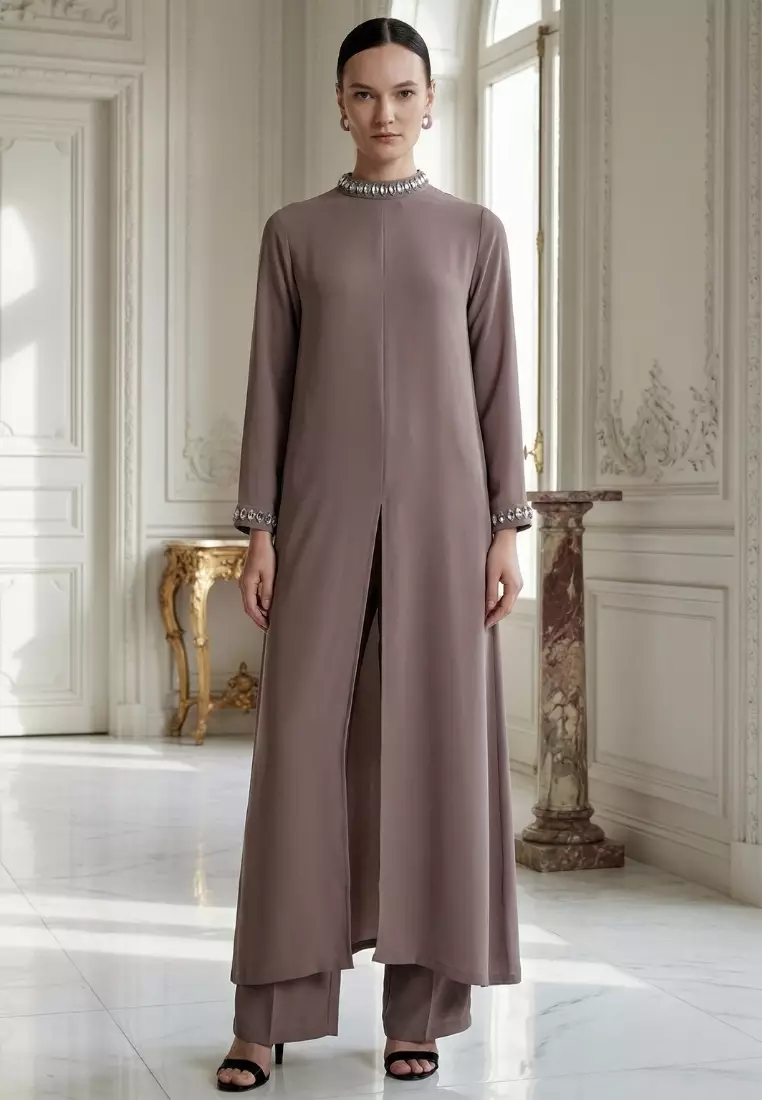 Demure Signature - Midi Coat Set in Frusan Silk Coffee Brown - SET