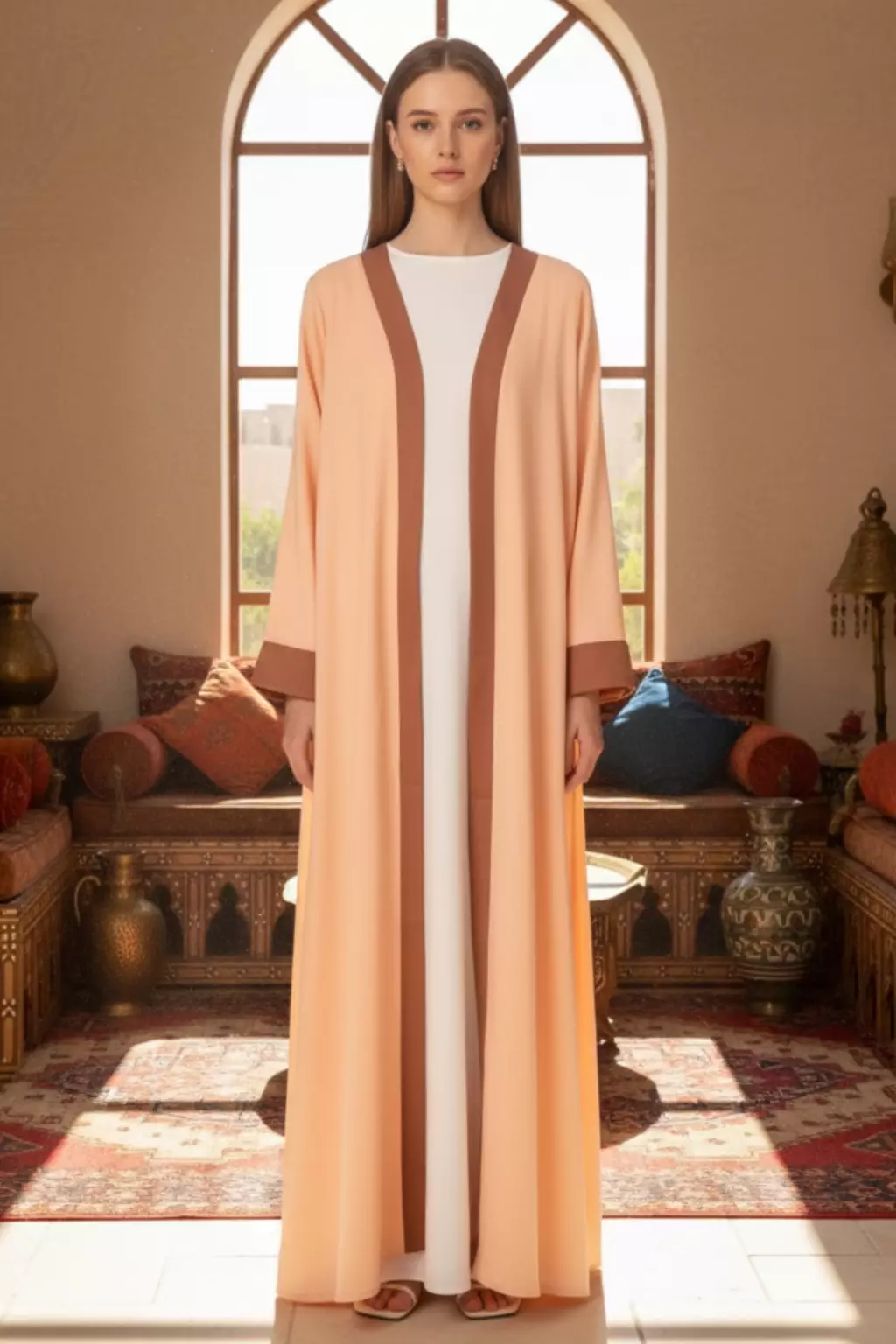 Demure Studio - ABAYA IN TANGERINE ORANGE - DAILY WEAR OPEN ABAYA