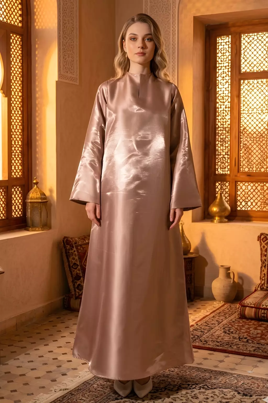 Demure Studio - DRESS IN SHIMMER TAUPE BROWN - MODEST DRESS- KAIN MIKADO