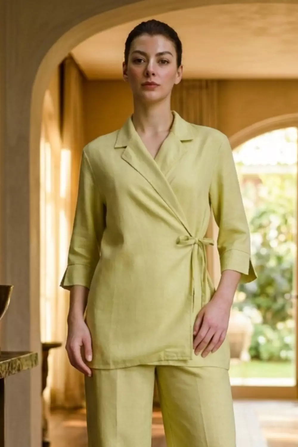 Demure Studio - Essentials Linen Travel - Kimono Blazer Shirt Olive Green (Only Shirt)