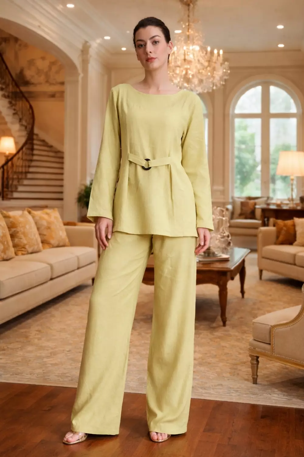 Demure Studio - Essentials Lounge Wear Lenin Set Olive Green (One Set Shirt & Pants)
