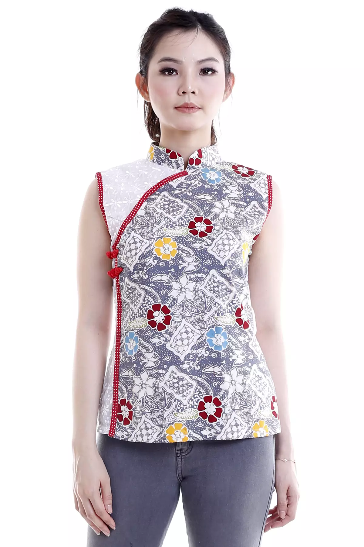 Juniper Sekar Setaman Putih Abu Blouse Batik
