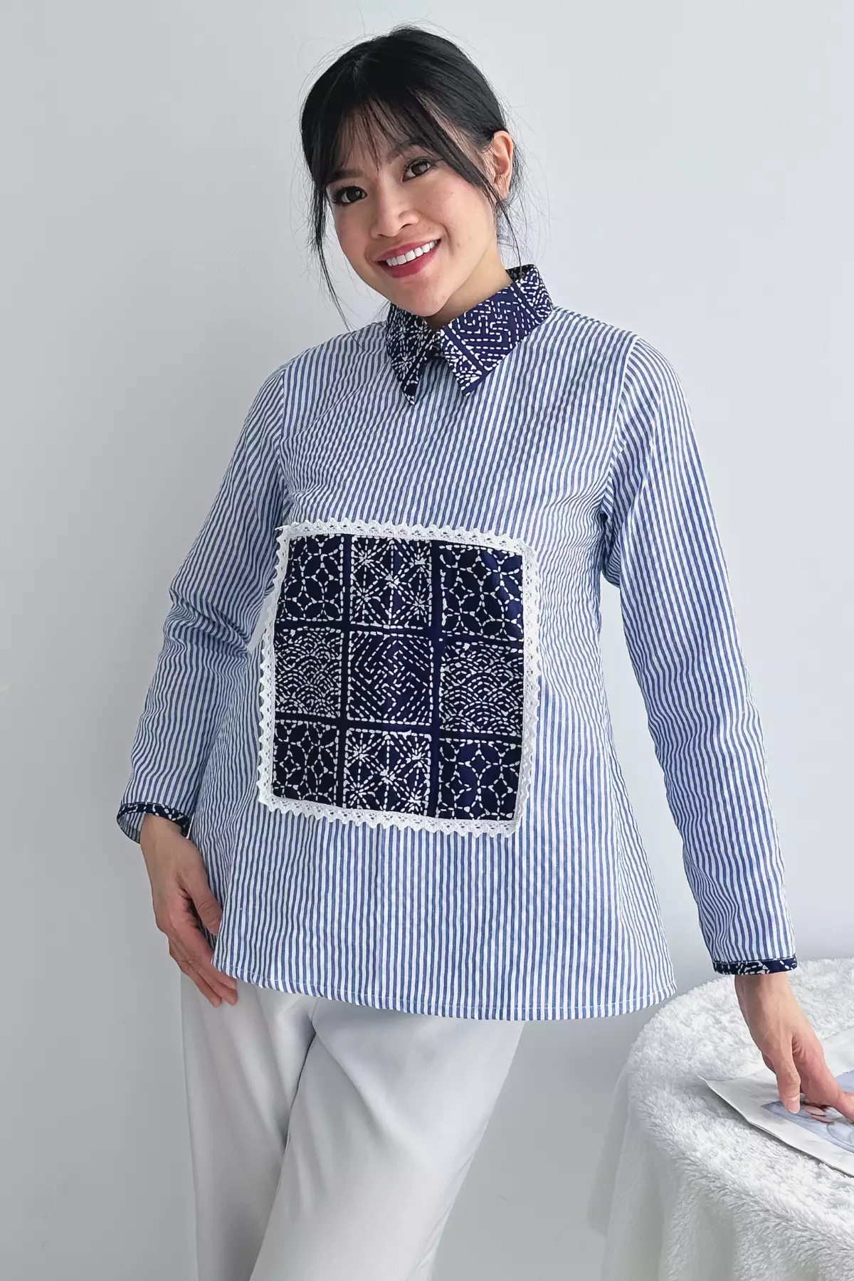 Ayuningrum Sashiko Stripes Biru Blouse