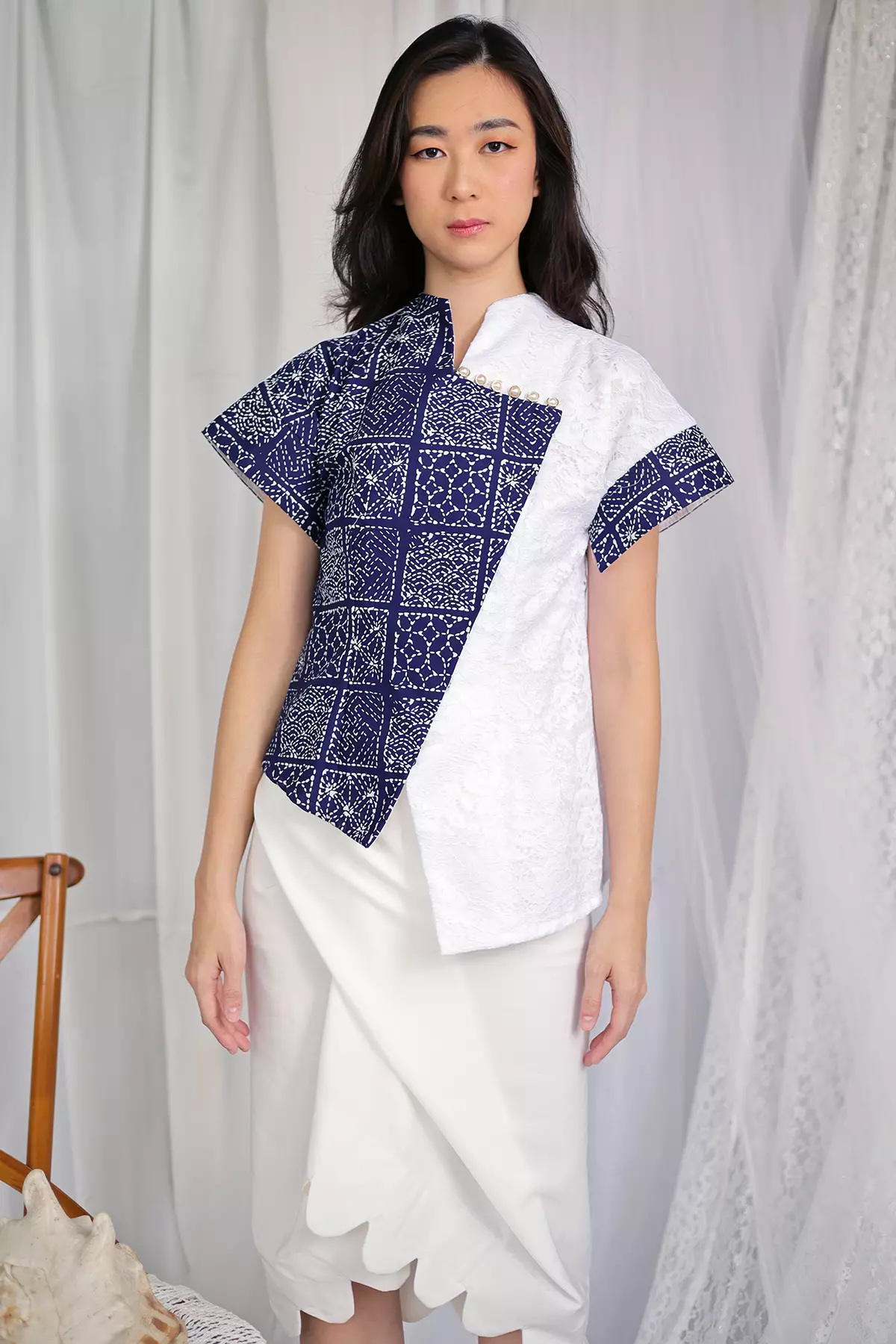 Serodja High Neck Blue Sashiko Kebaya Janggan
