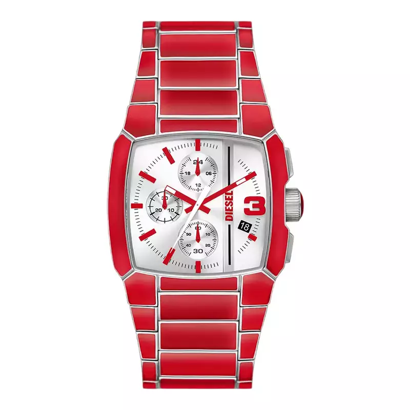 DIESELJam Tangan Pria Diesel Cliffhanger DZ4637 Chronograph Silver Dial Red Lacquer and Stainless Steel Strap5445000.003539000.00