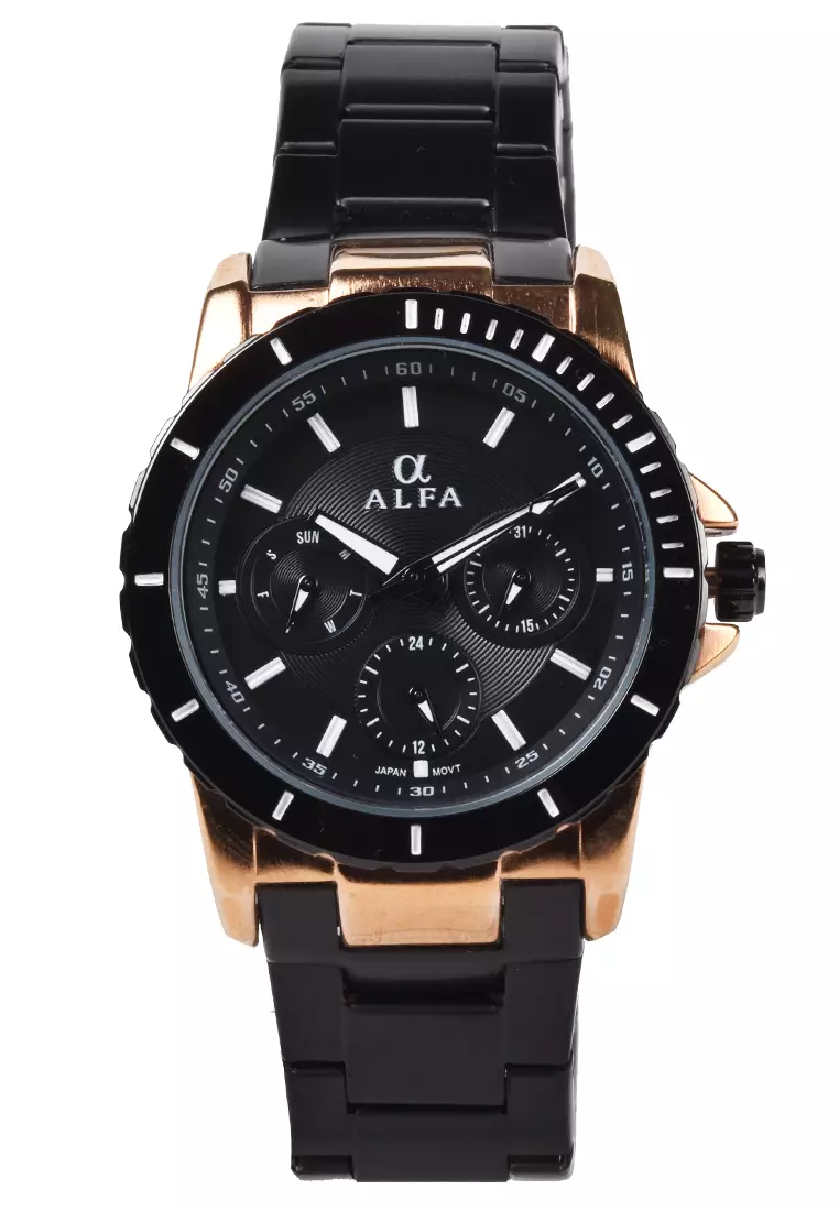 Alfa - Chronograph Watch - Rosegold - Black Stainless Steel Bracelet - 33018L