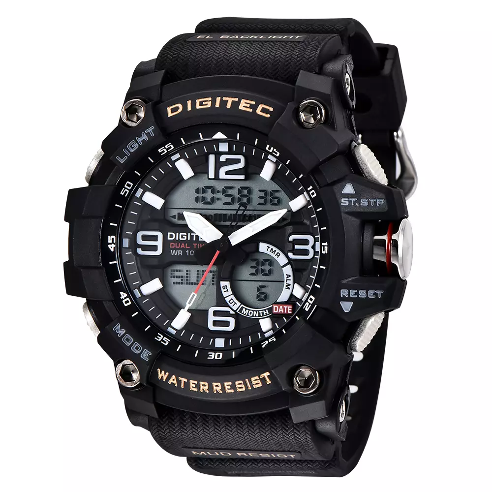 DIGITEC Jam Tangan Pria Digital-Analog DA-2102T with Digital Features BKGO-4W Black Gold