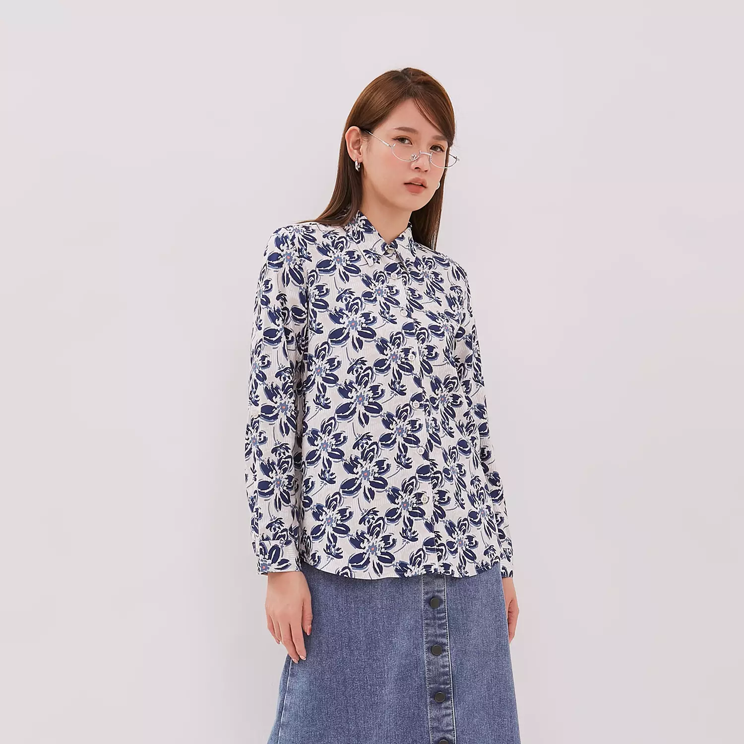 DUST Kemeja Flower Aster Navy ECOVERO™️(D.116464)