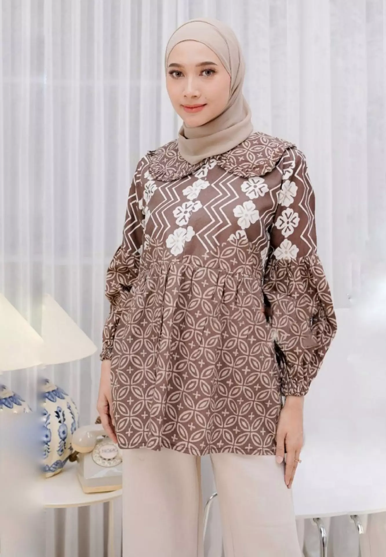 Blouse Batik Dharmarendra Coklat Premium Elegant B.K