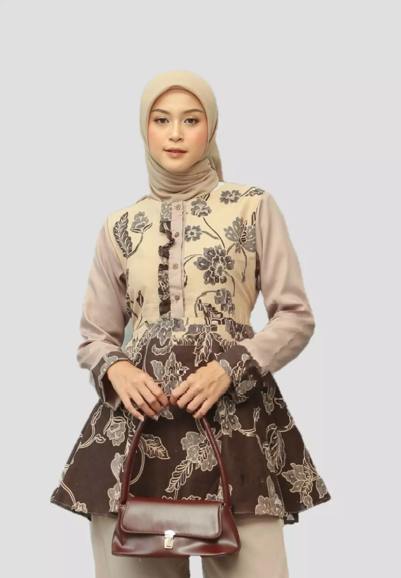 Blouse Batik Dyan Krem Premium Elegant B.K