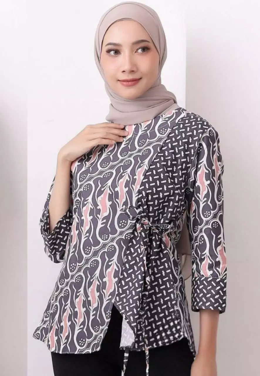 Blouse Batik Kusuma Abu Premium Elegant B.K