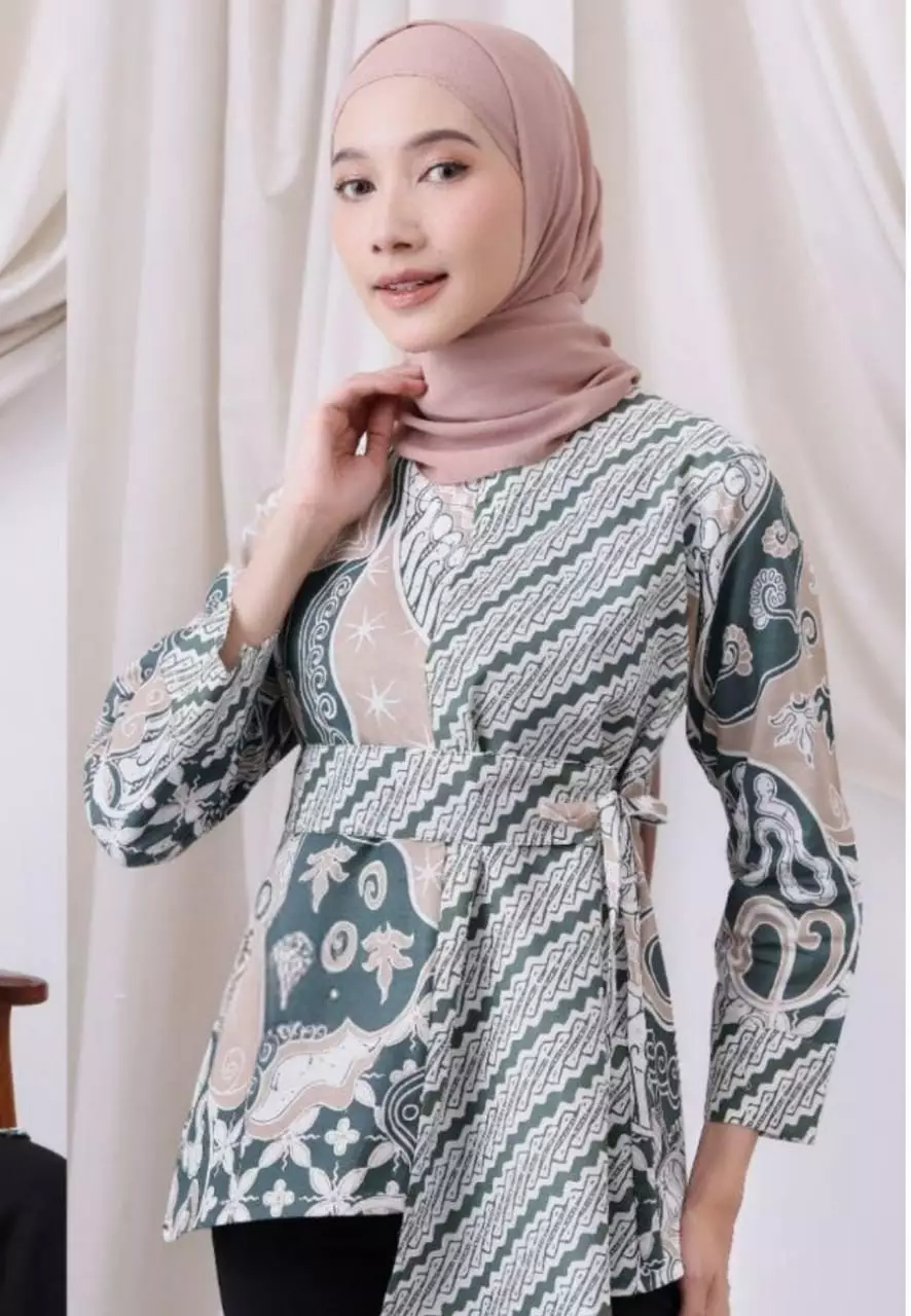 Blouse Batik Lintang Abu Premium Elegant B.K