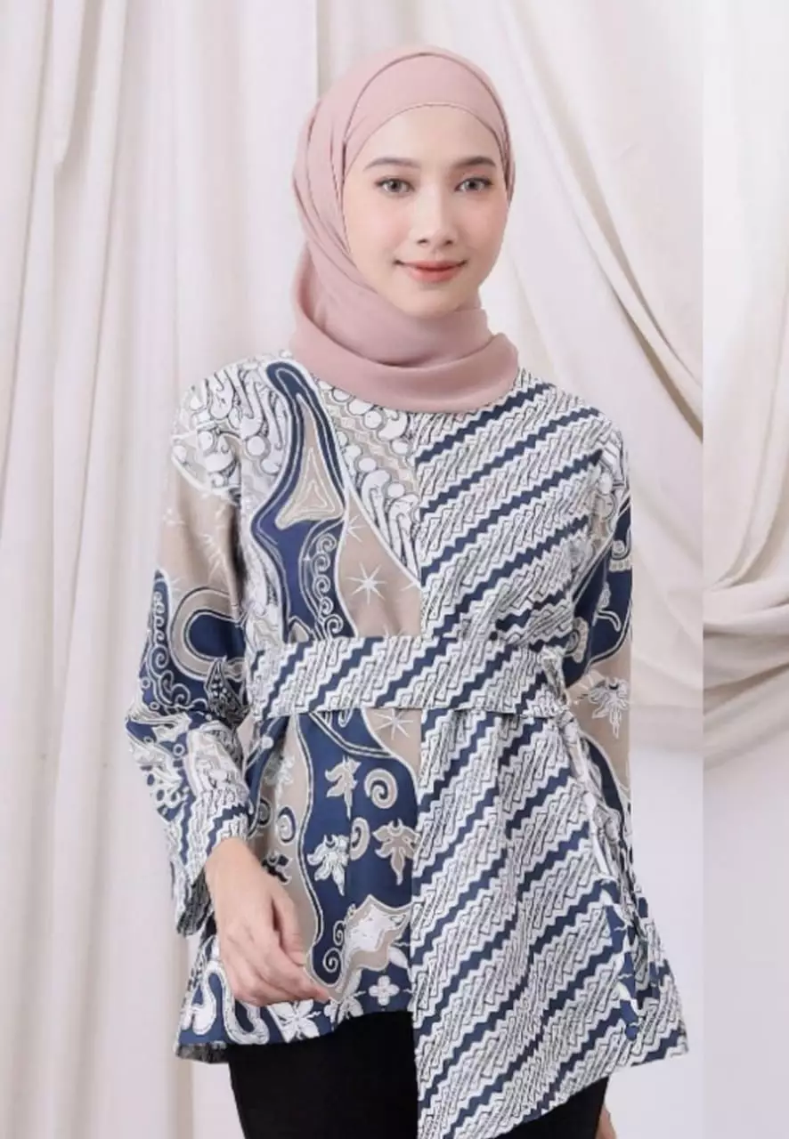 Blouse Batik Lintang Navy Premium Elegant B.K