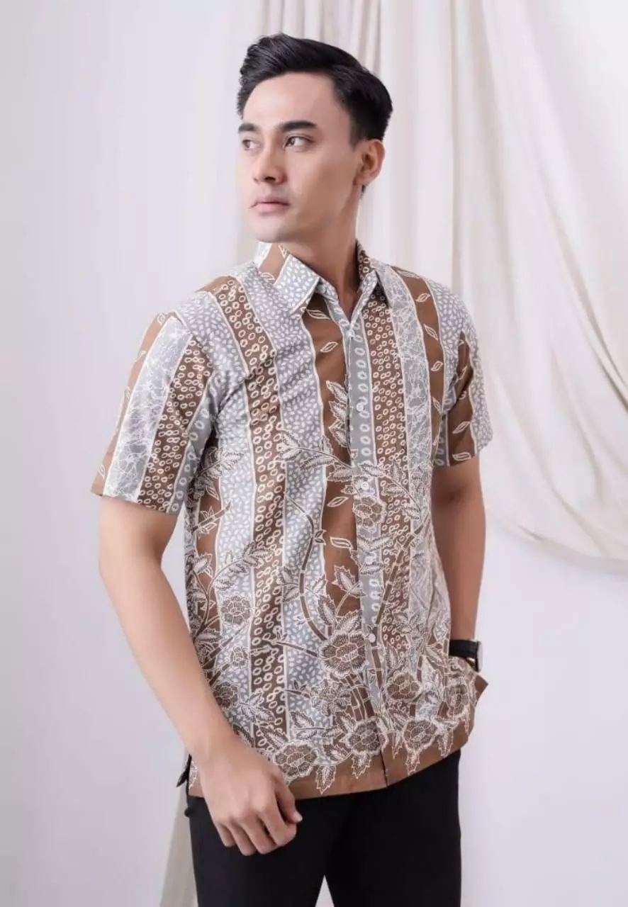 Fellinda Coklat Kemeja Batik Pria Premium Elegant Lengan Pendek B.K