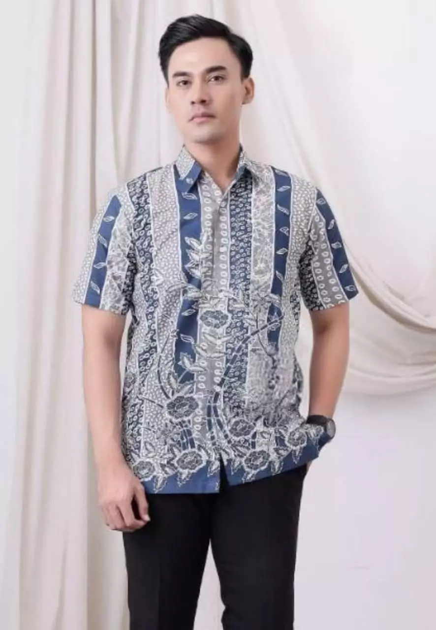 Fellinda Navy Kemeja Batik Pria Premium Elegant Lengan Pendek B.K