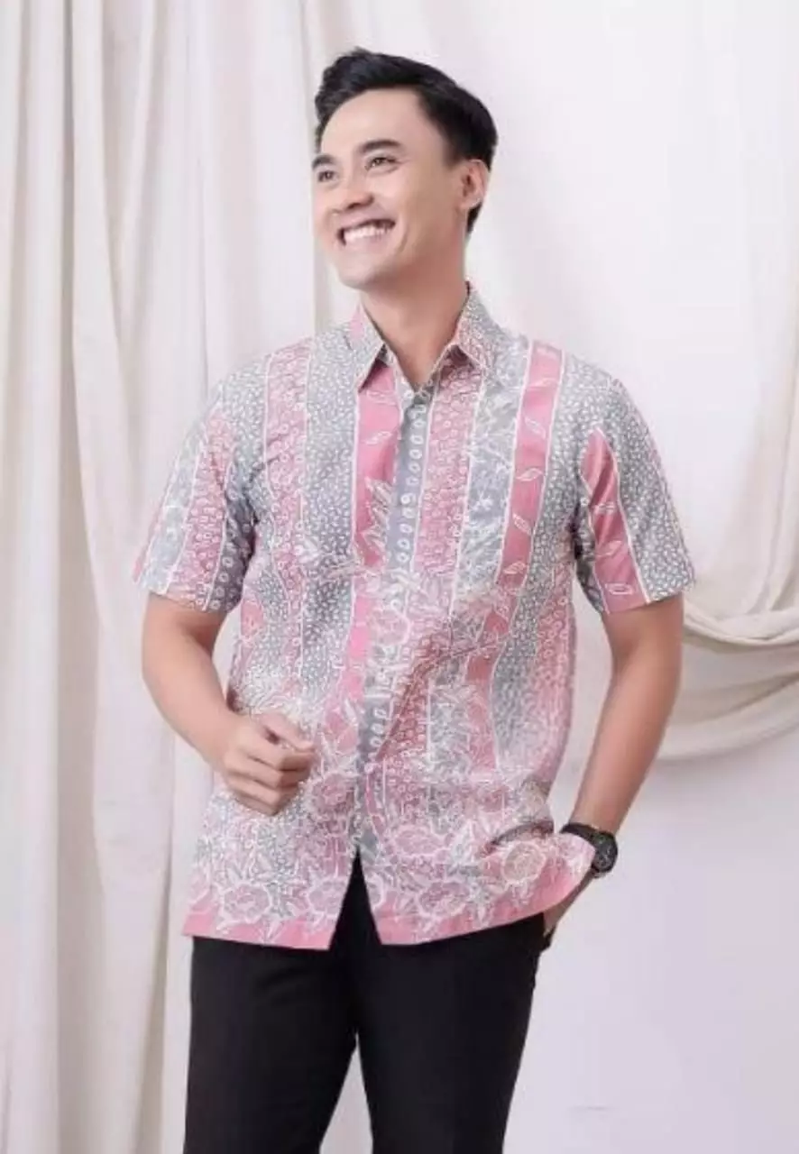 Fellinda Pink Kemeja Batik Pria Premium Elegant Lengan Pendek B.K