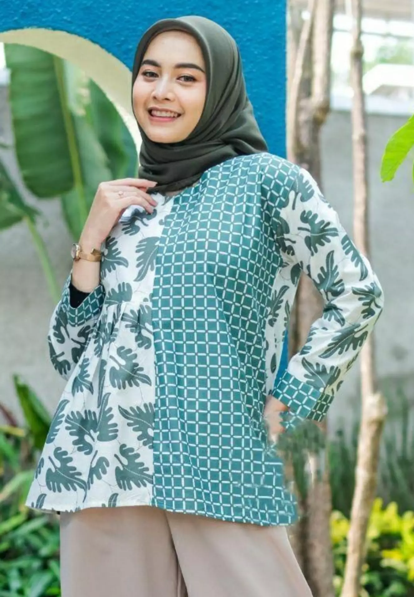 Kumala Hijau Tosca Blouse Batik Premium Elegant SD