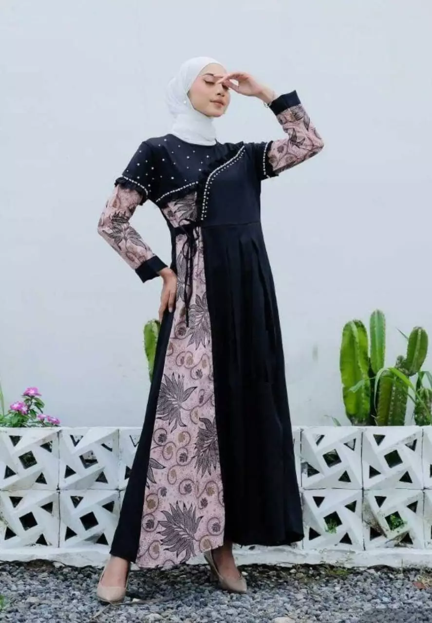 Elegant BatikMoza Oranye Hitam Dress | Gamis | Long Dress Party Modern Premium JTR650000.00239000.00
