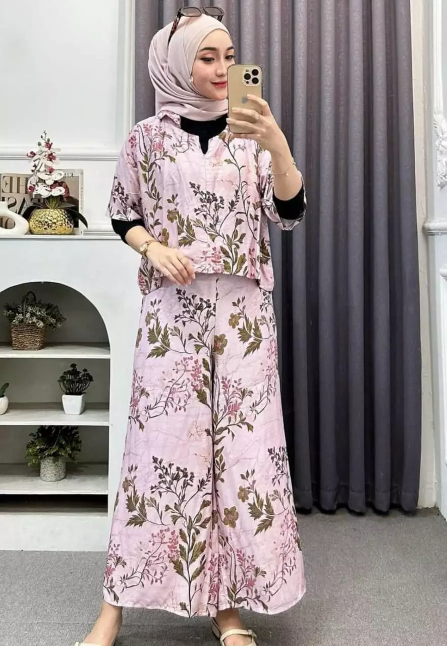 Setelan Kulot Crop Jumbo Soft Pink Premium Modern MYA