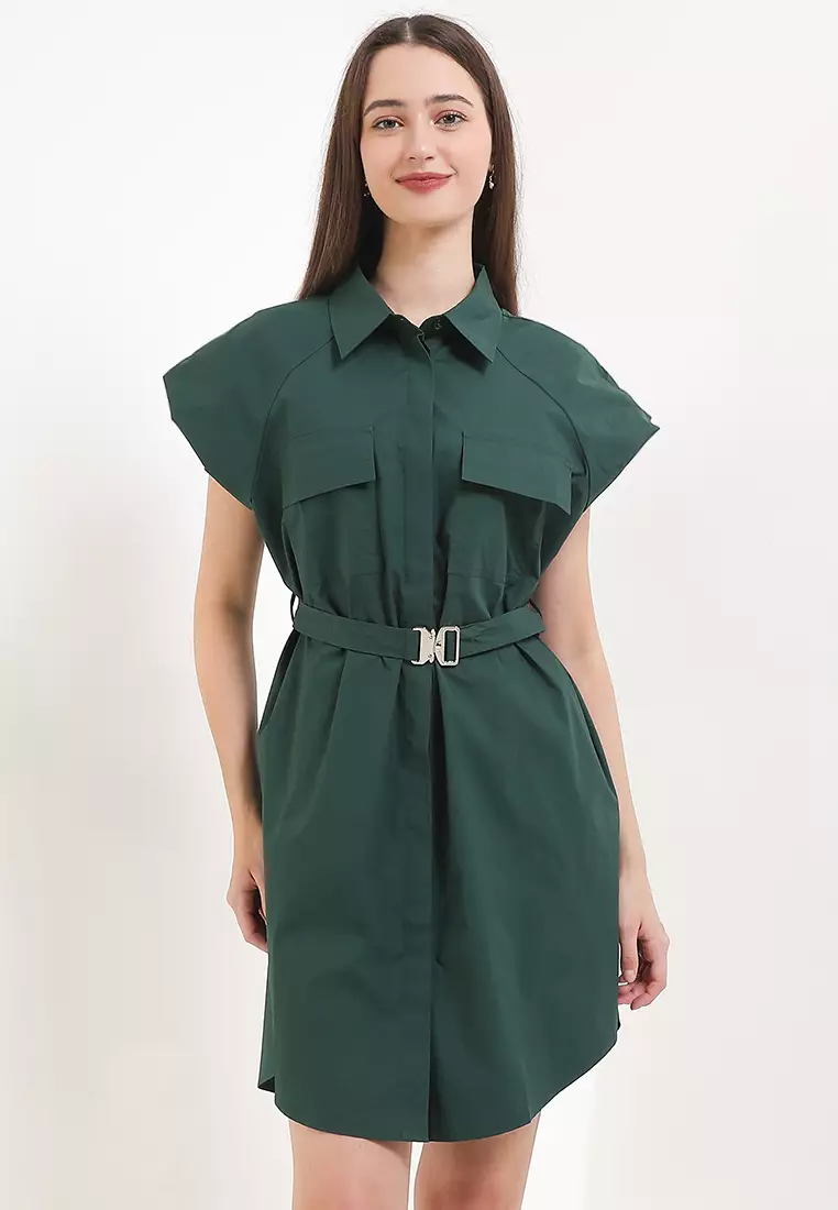 Belted Sleeveless Mini Shirt Dress
