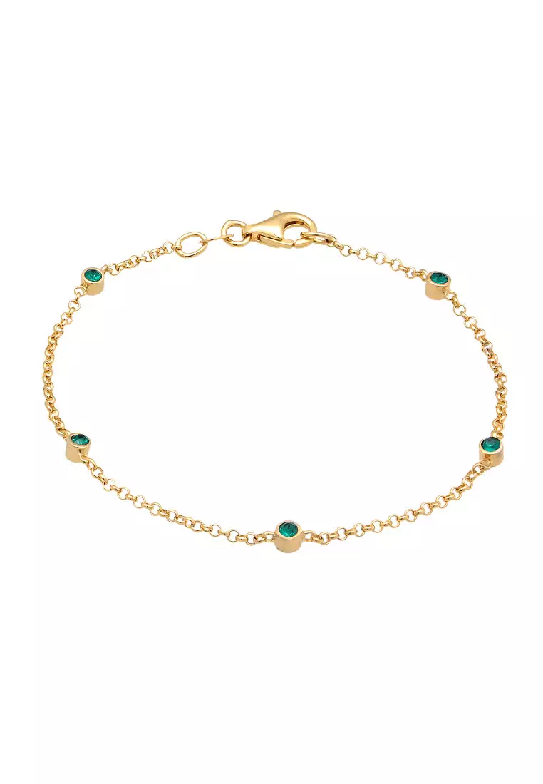 Gelang Perhiasan Perak 925 Wanita Basic Filigree Combinable Crystals Green Gold Plated