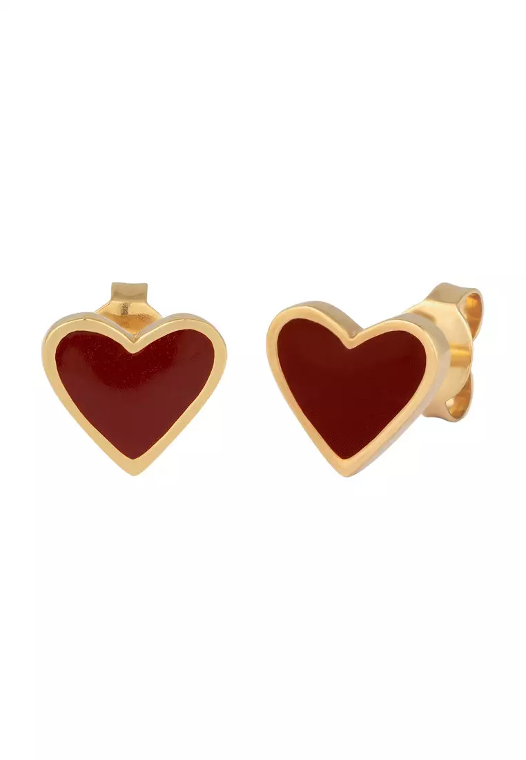 Anting Perhiasan Perak 925 Wanita Stud Heart Red Enamel Gold Plated