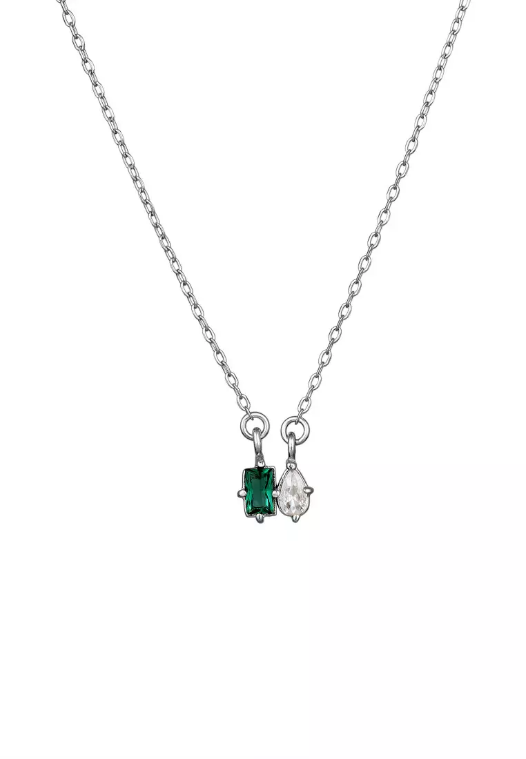 Kalung Perhiasan Perak 925 Wanita Drop dengan Synthetic Emerald dan Zirconia