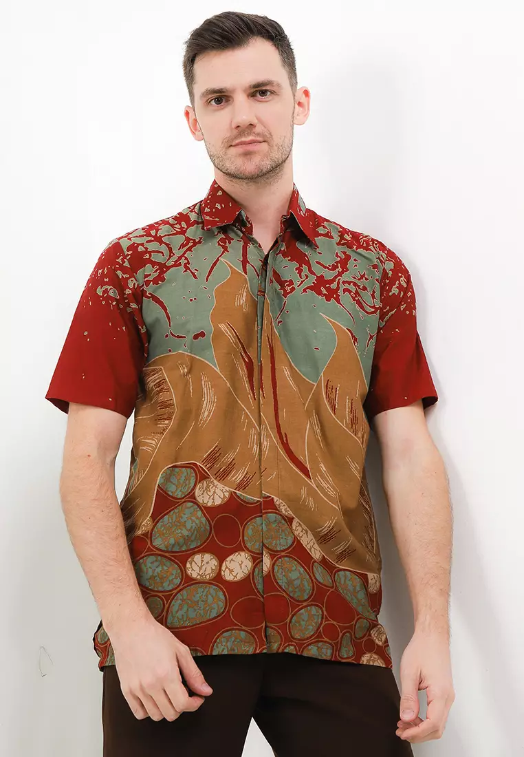Batu Kemeja Batik Premium Pria Casual Modern Lengan Pendek