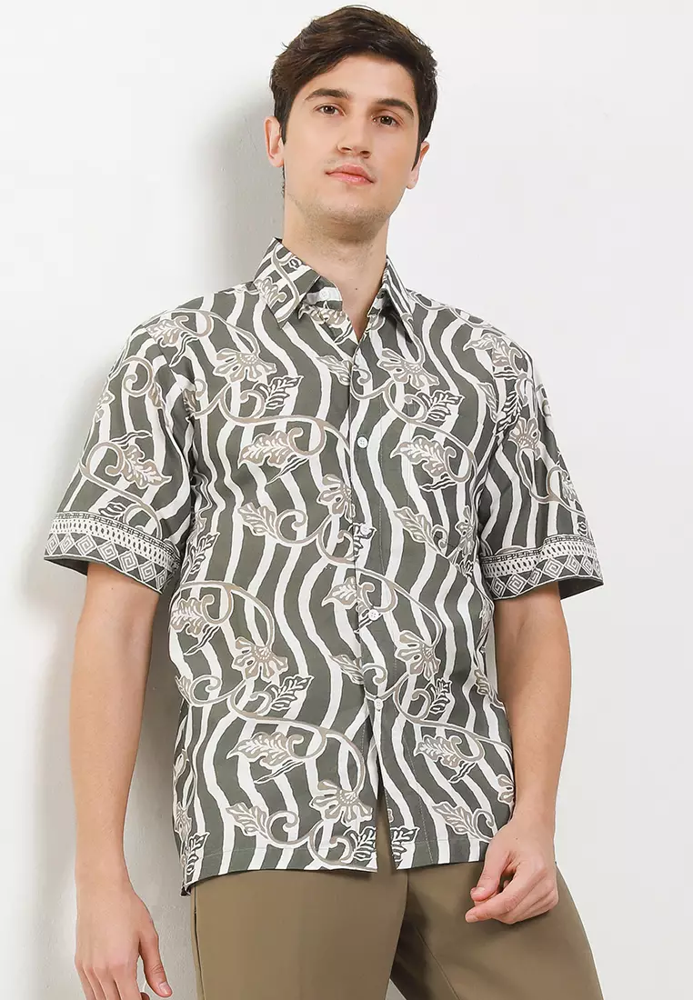 Charemon Kemeja Batik Premium Pria Casual Modern Lengan Pendek