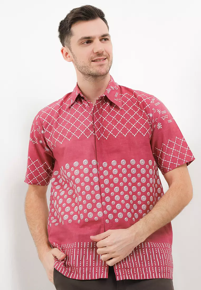 Jaring Kemeja Batik Premium Pria Casual Modern Lengan Pendek