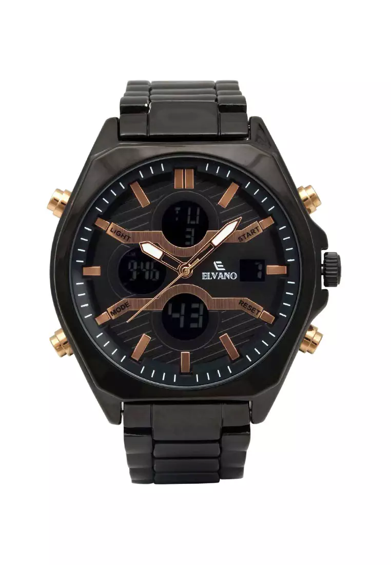 Elvano Jam Tangan Pria - Black Rosegold - Stainless Steel - 1084MA1-3BK