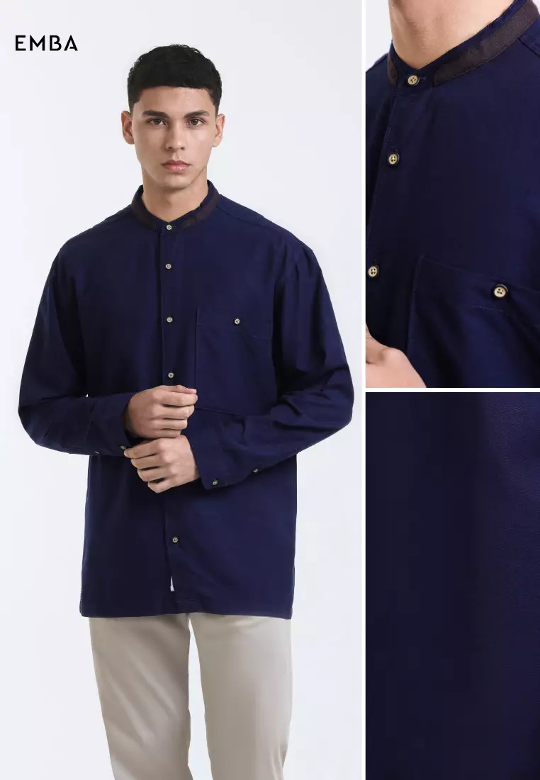Emba Denim - Aram One Kemeja Koko Pria Lengan Panjang Oversize Navy