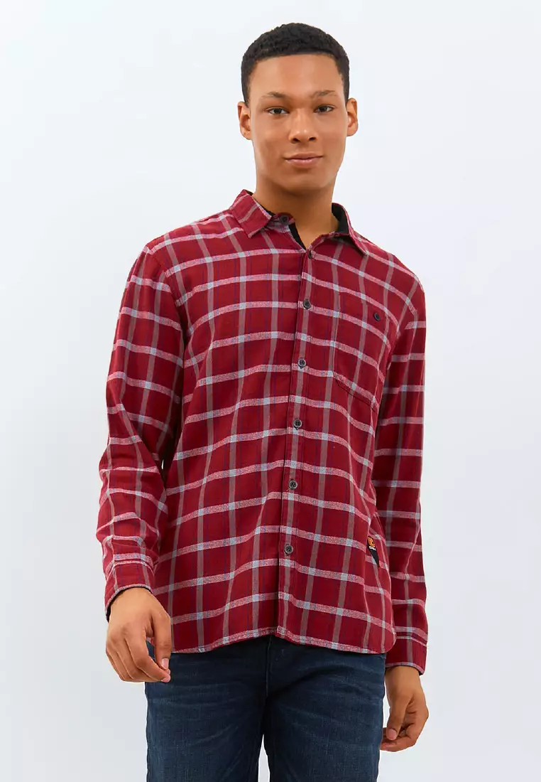 EMBA DENIM - Kemeja Flannel Pria Lengan Panjang Regular Fit Motif Kotak Warna Merah - Vesta One