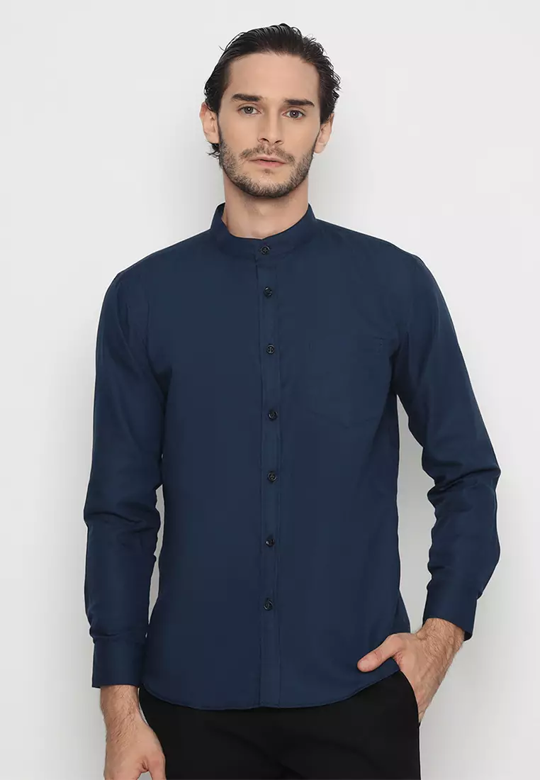 Enzy Basic Kemeja Shanghai Oxford Panjang - Navy
