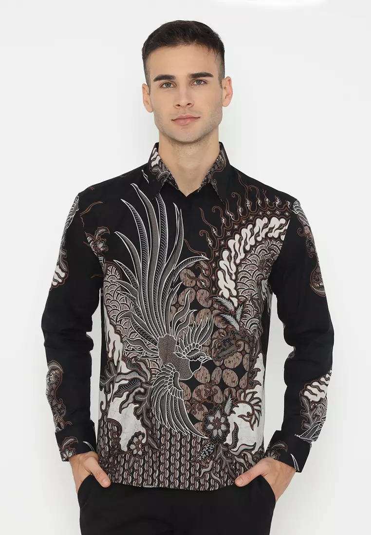Kemeja Batik Pria Slimfit Kalandra - Black