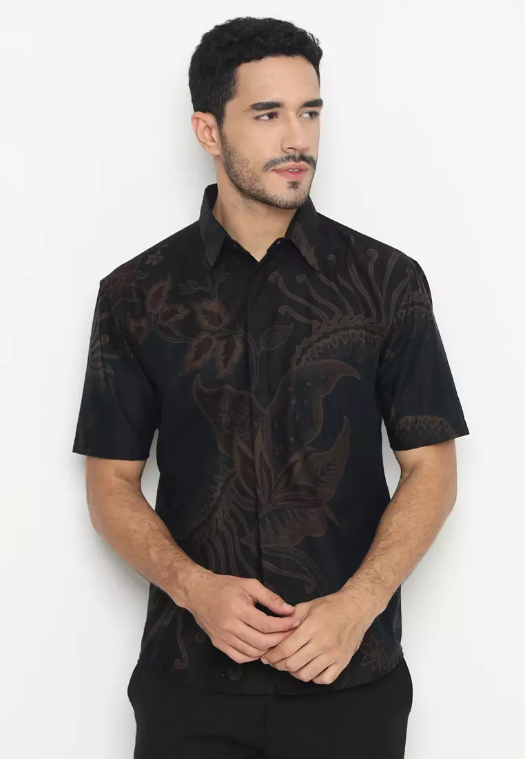 Kemeja Batik Pria Slimfit Senapati Lengan Pendek - Black