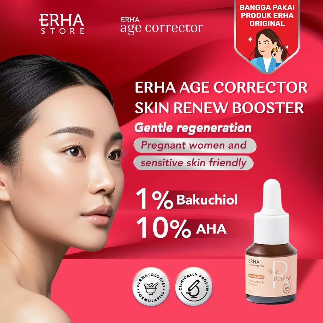 Erha Age Corrector Skin Renew Booster 15ml - 1% Bakuchiol & 10% AHA Booster Anti Aging | Alternatif Vegan Retinol | Meregerenasi Meremajakan Kulit | Menyamarkan Tanda Penuaan | Mencerahkan | Kolagen | Gentle untuk Kulit Sensitif