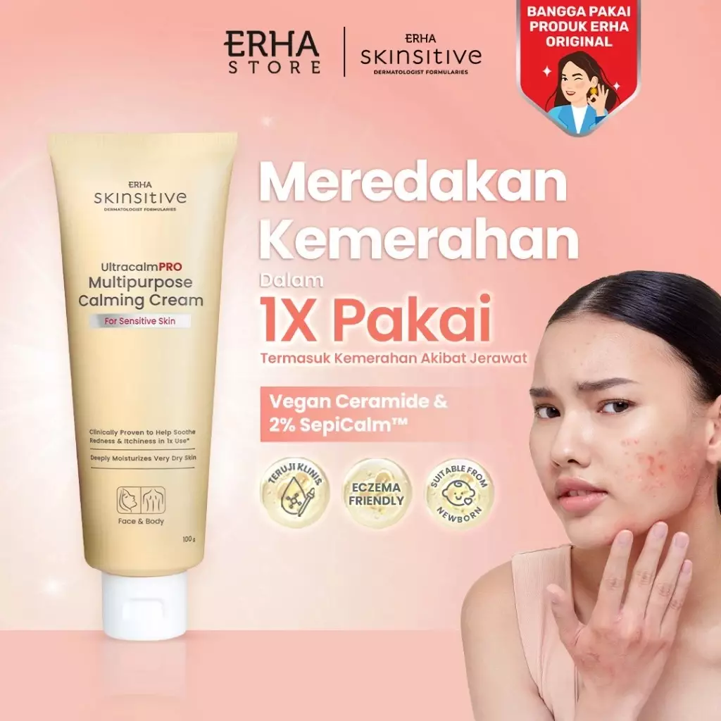ErhaERHA Skinsitive UltracalmPRO Multipurpose Calming Cream 100gr | Krim Multifungsi Untuk Semua Jenis Kulit (Normal, Kering, Sensitif, Iritasi) | Meredakan Gatal dan Kemerahan, Sunburn | Meredakan Eksim | Mencegah Stretchmark | Aman untuk Anak 3+250000.00190900.00