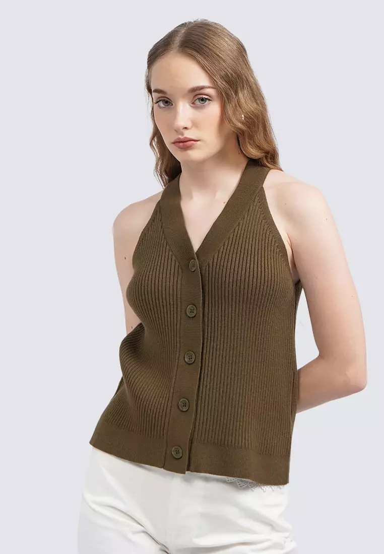 Halter Neck Sleeveless Knit Top OLIVE