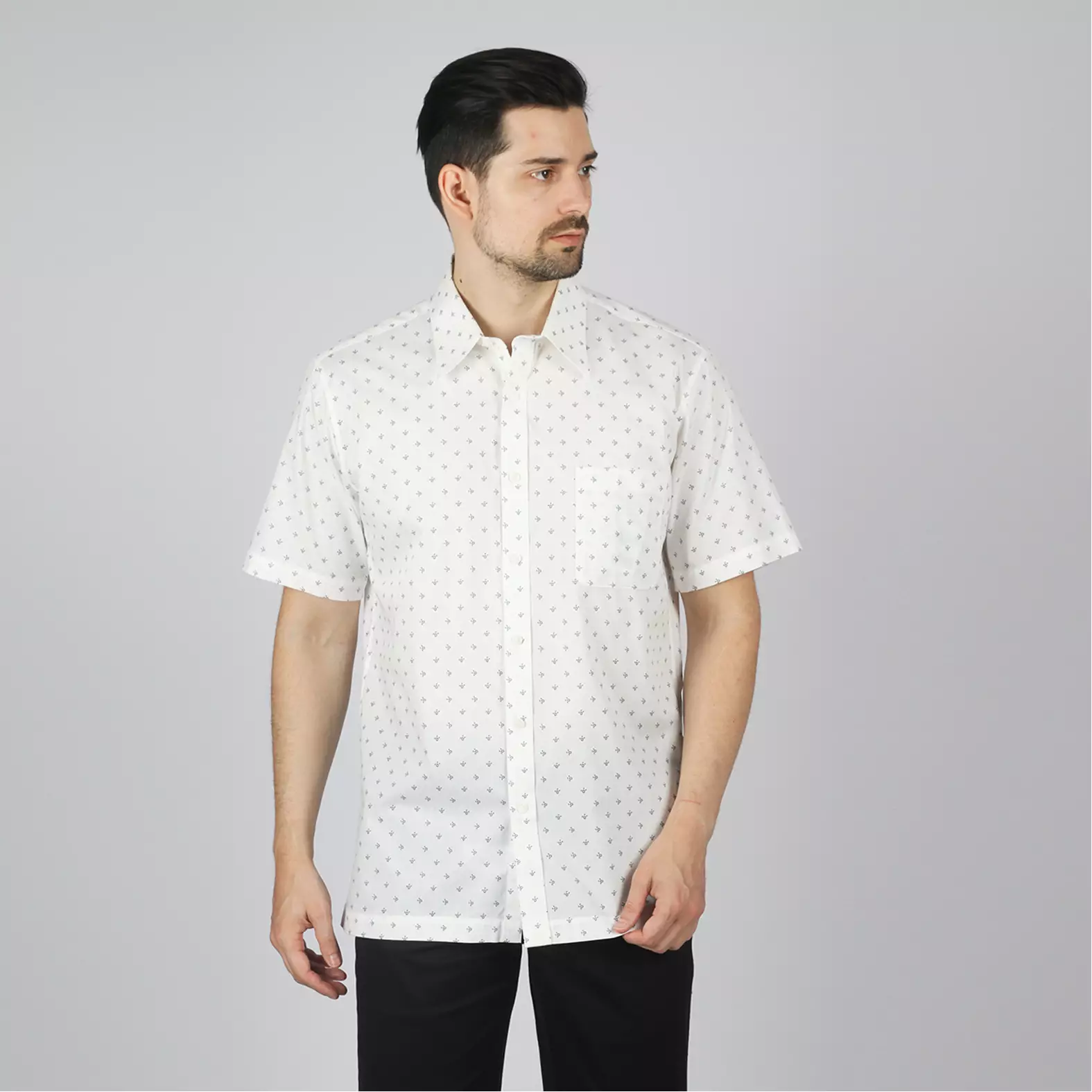 Kemeja Ethan White Lengan Pendek Print Moppe White