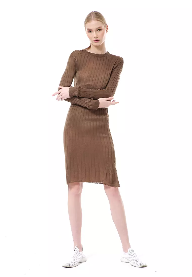 Adela Dress Rajut Tunik Wanita Motif Polos Long Sleeve Relaxed Fit - Bronze
