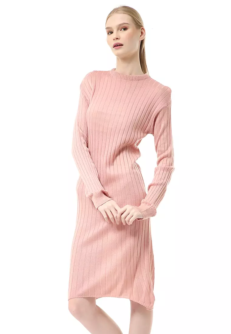 Adela Dress Rajut Tunik Wanita Motif Polos Long Sleeve Relaxed Fit - Dusty