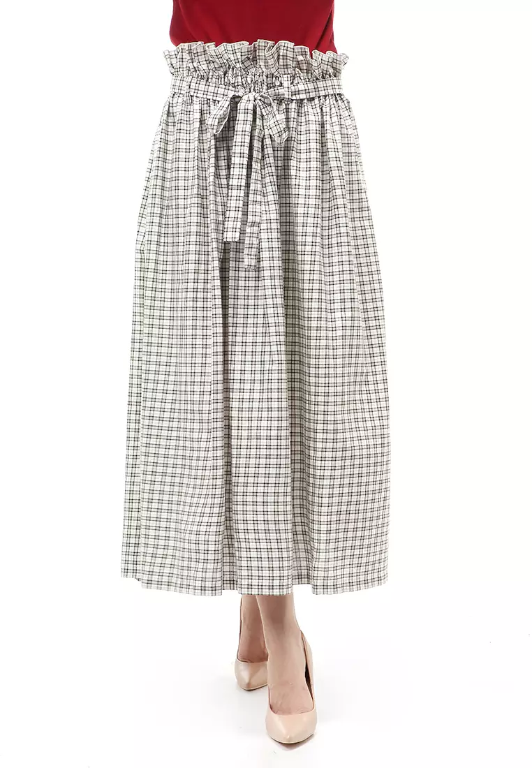 Amel Long Skirt Bawahan Wanita Motif Kotak-Kotak Regular Fit - White