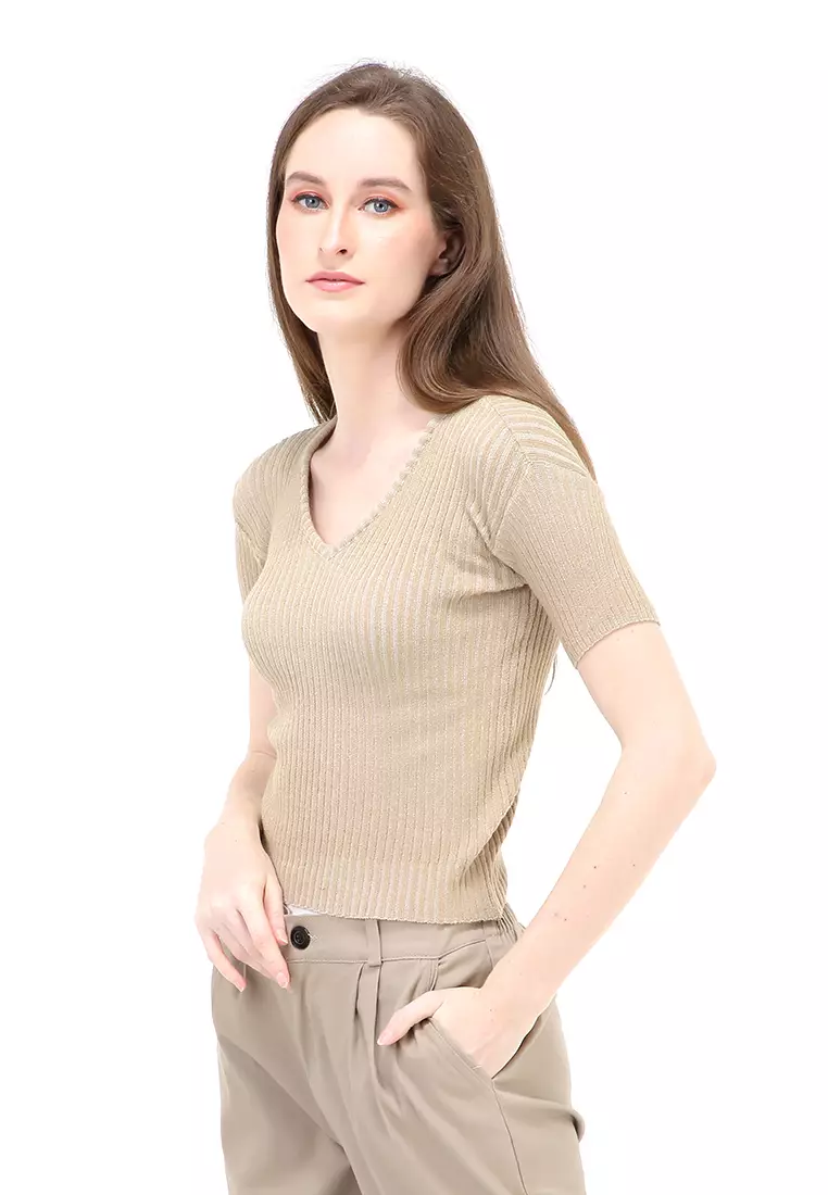 Amora Vneck Rajut Short Sleeves Atasan Casual Wanita - Coksu